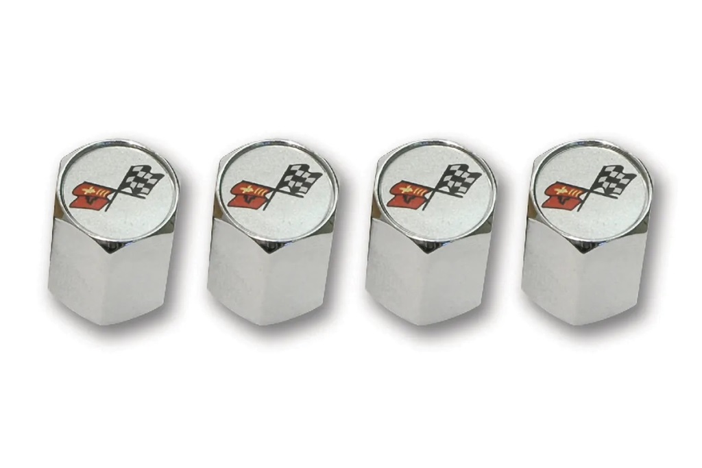 1953 -1982 Corvette Valve Stem Caps. – Chrome With Cross Flags Logo – #40006