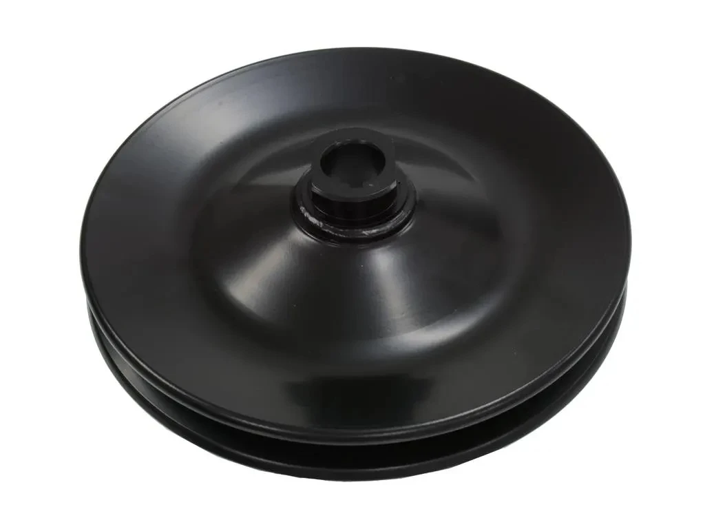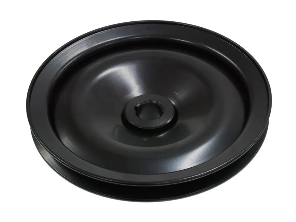 Power steering pump pulley, stamped steel. Use on pump w/tapered pulley shaft and lock nut. 5 1/2″ O.D.