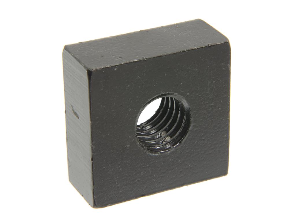 This body mount nut is 1 inch square x 7/16 inch thick. The threaded hole is 7/16 inch x 14 thread.