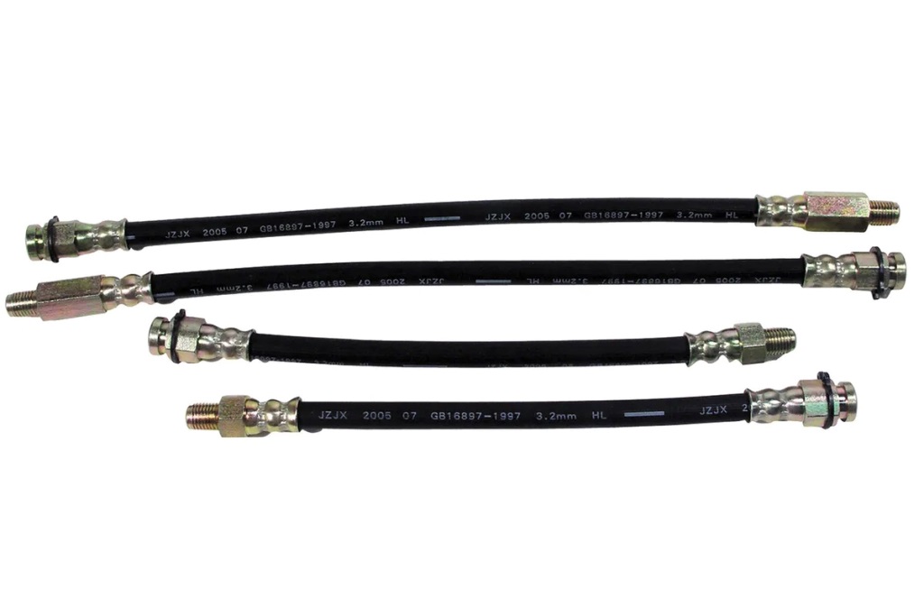 Set of 4 new hoses –  2 x front & 2 x rear hoses, a set of copper washers and 4 new brake hose clips.