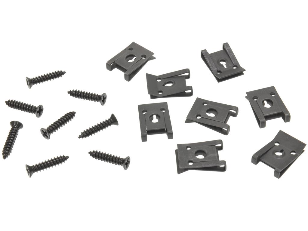 This set includes black screws. Some cars used chrome screws, use part #343034 for the chrome screws kit.