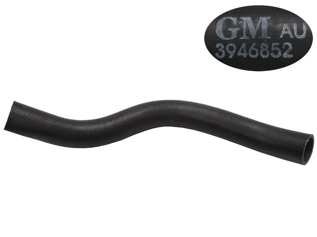 UPPER RADIATOR HOSE, TO SUIT ALL SMALL BLOCK MOTORS. WITH COPPER RADIATOR. HOSE IS STAMPED WITH #3946852 AND GM LOGO.