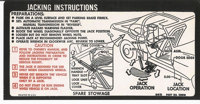 1973-1974 C3 CORVETTE JACKING INSTRUCTIONS DECAL. #13565